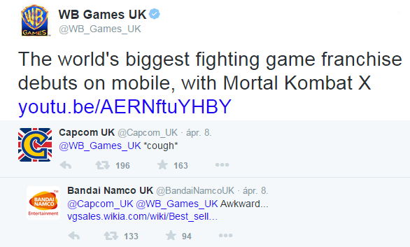 Mint ahogyan az a fenti képen látható, a Capcom mindössze egy cinikus köhögéssel reagált a WB hülyeségére, hogy aztán a Bandai tegye helyre mindkettejüket a Tekken eladási mutatóival. Mit lehet erre mondani? Bandai wins! Fatality!