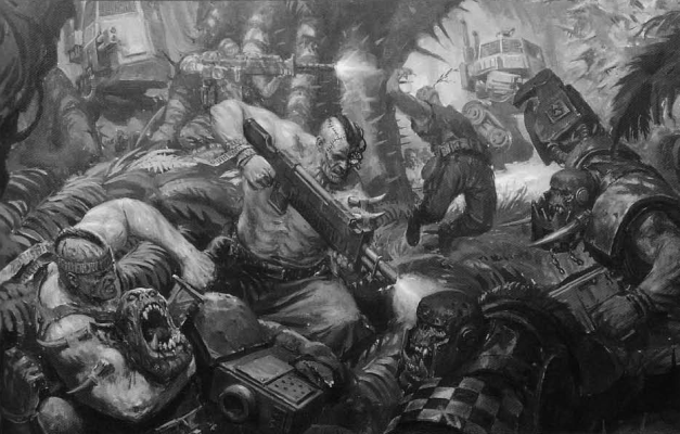 ja igen, szoktatok forrást kérdezni: Aaron Dembski-Bowden Helsreach c. regényét spoilereztem szénné, továbbá a Waaagh! Ghazghkull supplementből, az Epic: Armageddon-ból, és a szokásos wikikből, meg a kedvenc 1D4Chanról is vannak elemek.