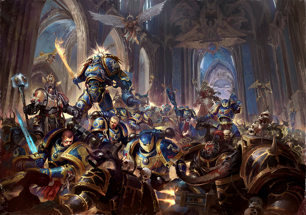 Barokkos festmény a frissen felébredt Guilliman és hívei küzdelméről a Fekete Légióval