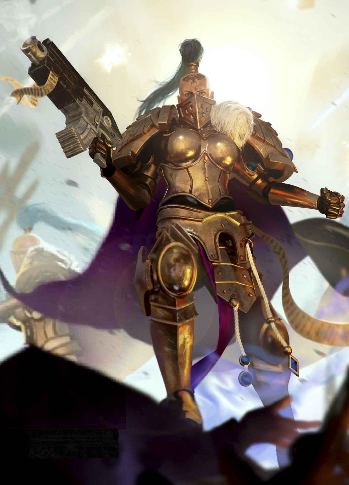 A többiek – Cawl, Celestine, Amalrich marsall, a Szürke Lovagok vezetője (aki újonan bevezetett nevesített hős kéne legyen de annyira semmilyen karakter, hogy nem is részletezném), Greyfax inkvizítor, és a többi, és a többi – mind vele tartottak, ahogy számos csatahajó, romboló, cirkáló, több rendből való gárdisták, illetve nem elhanyagolható mennyiségű hadsereg, tankok, lovagok... Számottevő haderő.